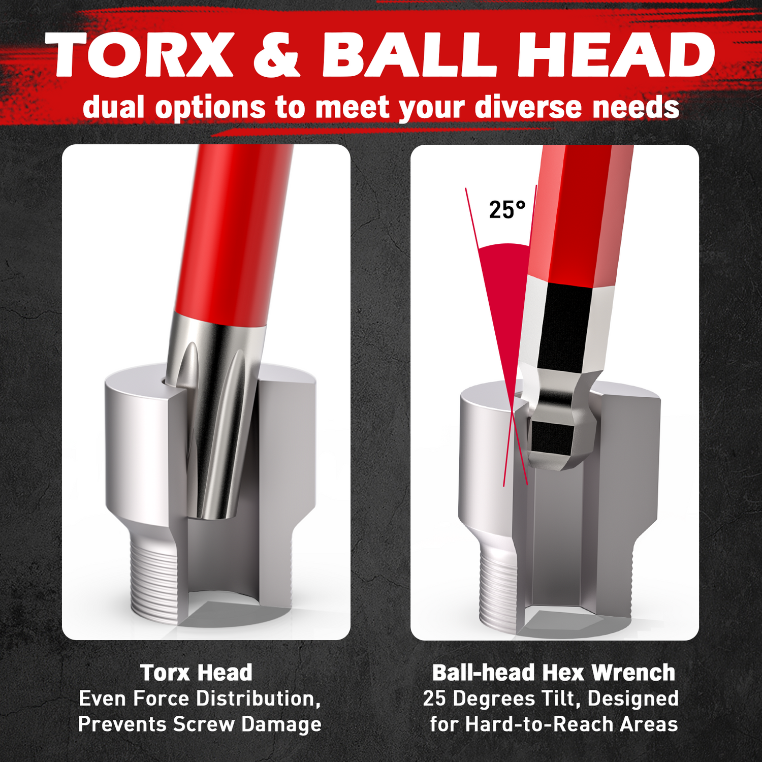 Ball-end design supports up to 25° tilt, allowing easy access to bolts in tight, deep, or awkward positions—perfect for automotive and machinery repairs. -