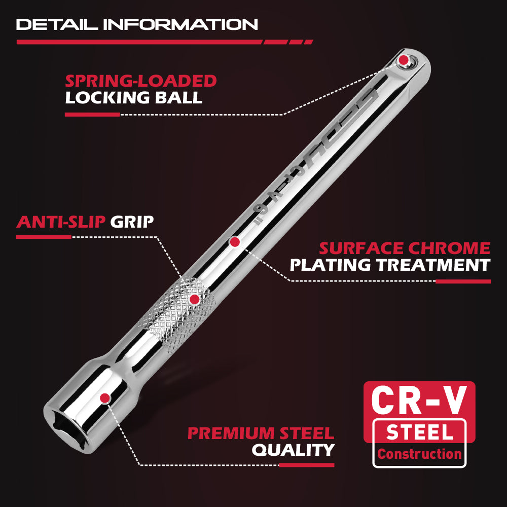 Each bar features a locking ball to hold sockets firmly in place, preventing slipping during high-torque applications.