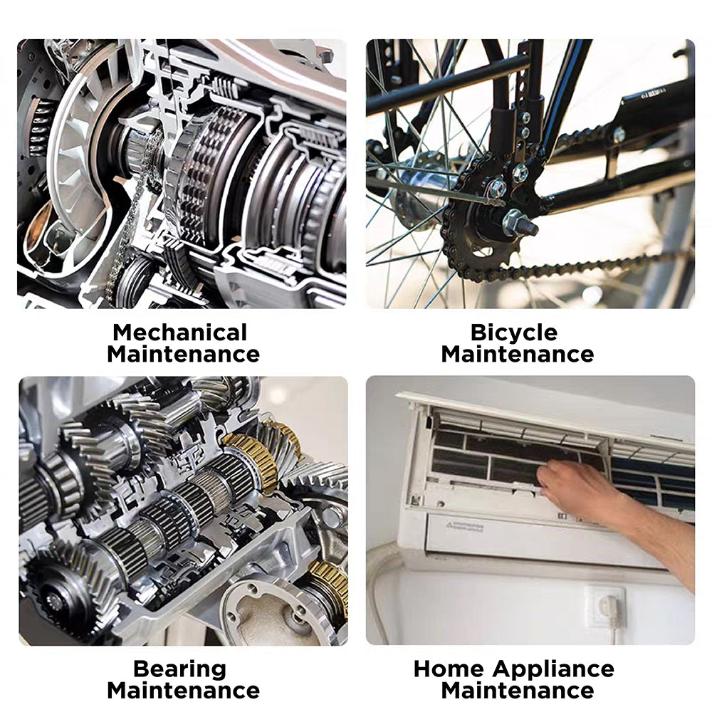 Perfect for automotive repair, bicycle chains, bearing lubrication, machinery servicing, and home appliance maintenance.