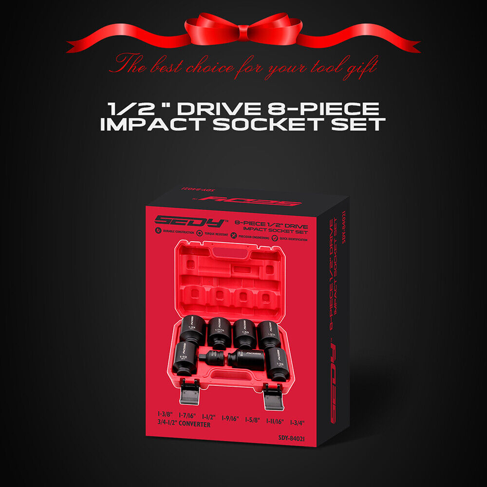 SEDY 8Pcs SAE Deep Impact Socket Set - Ideal for Wheel Axle Nut Wrench Applications is backordered and will ship as soon as it is back in stock.