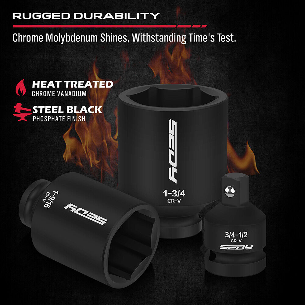 SEDY 8Pcs SAE Deep Impact Socket Set - Ideal for Wheel Axle Nut Wrench Applications