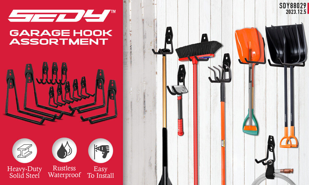 SEDY 15-Piece Garage Tool Storage Wall Hook Set - Stainless Steel Hangers for Organizing Tools is backordered and will ship as soon as it is back in stock.