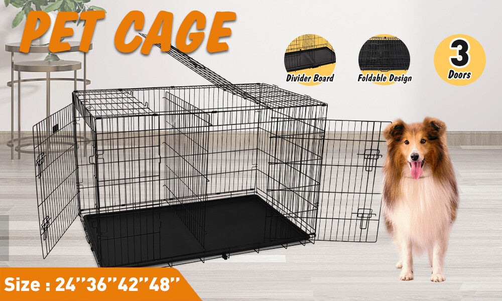 VaKa Pet 24/36/42/48-Inch Foldable Dog Cage with 3 Doors & Divider Panel - 24inch is backordered and will ship as soon as it is back in stock.